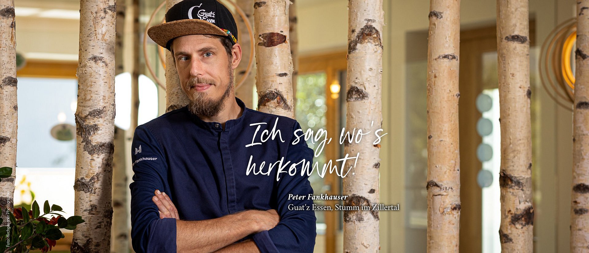 Der 1. Permakulturgarten in Stumm im Zillertal bringt jede:n Besucher:in zum Staunen. Dahinter steckt die Handschrift von Peter Fankhauser, der sich vor 13 Jahren das Permakultur-Gärtnern selbst beigebracht hat. 80 Prozent der Produkte, die er in seinem naturnahen Garten erntet – verwandelt er in seinem im Jahr 2018 eröffneten vegetarisch veganen Restaurant Guat’z Essen in feinsinnige, kreative Menüs, die ihm bei Gault&Millau schon drei Hauben eingebracht haben. Der leidenschaftliche Küchenchef, den es in jungen Jahren ins Napa Valley und nach Palm Beach zog, kochte nach seiner Rückkehr aus den USA in den besten Restaurants Österreichs – von Ischgl bis nach Wien. Das nachhaltige Konzept, das er im eigenen Restaurant Guat’z Essen in verfolgt, ist seiner Zeit voraus. Sein Menü ändert sich alle zwei Wochen, denn es richtet sich nach dem, was gerade im Garten hinter dem Haus erntereif ist.
